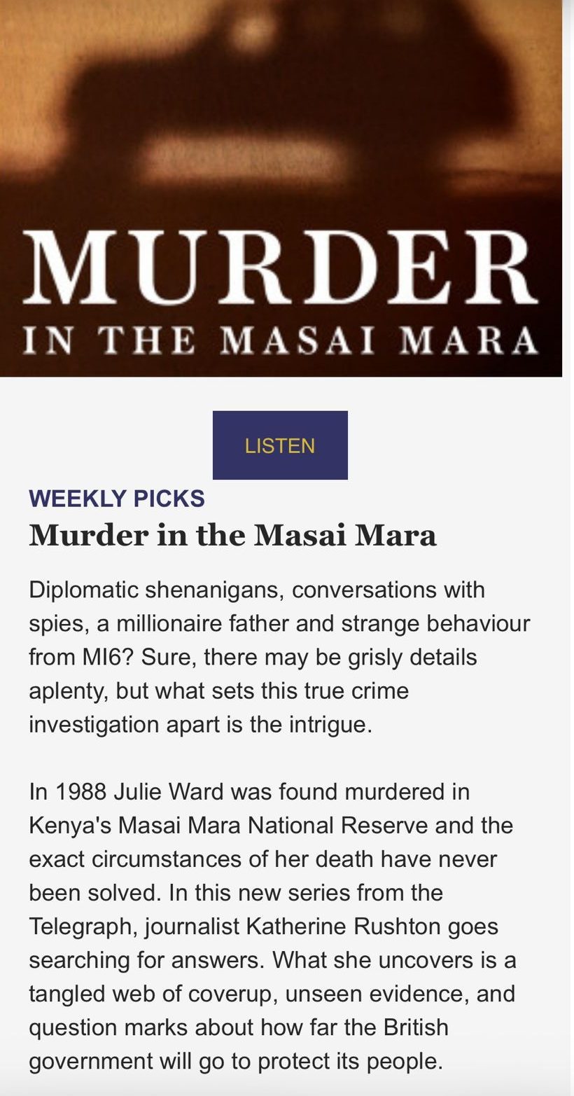 MURDER IN THE MASAI MARA: Kenya’s secret deal to ‘silence’ father of murdered Julie Ward, The Telegraph, Nov 2025